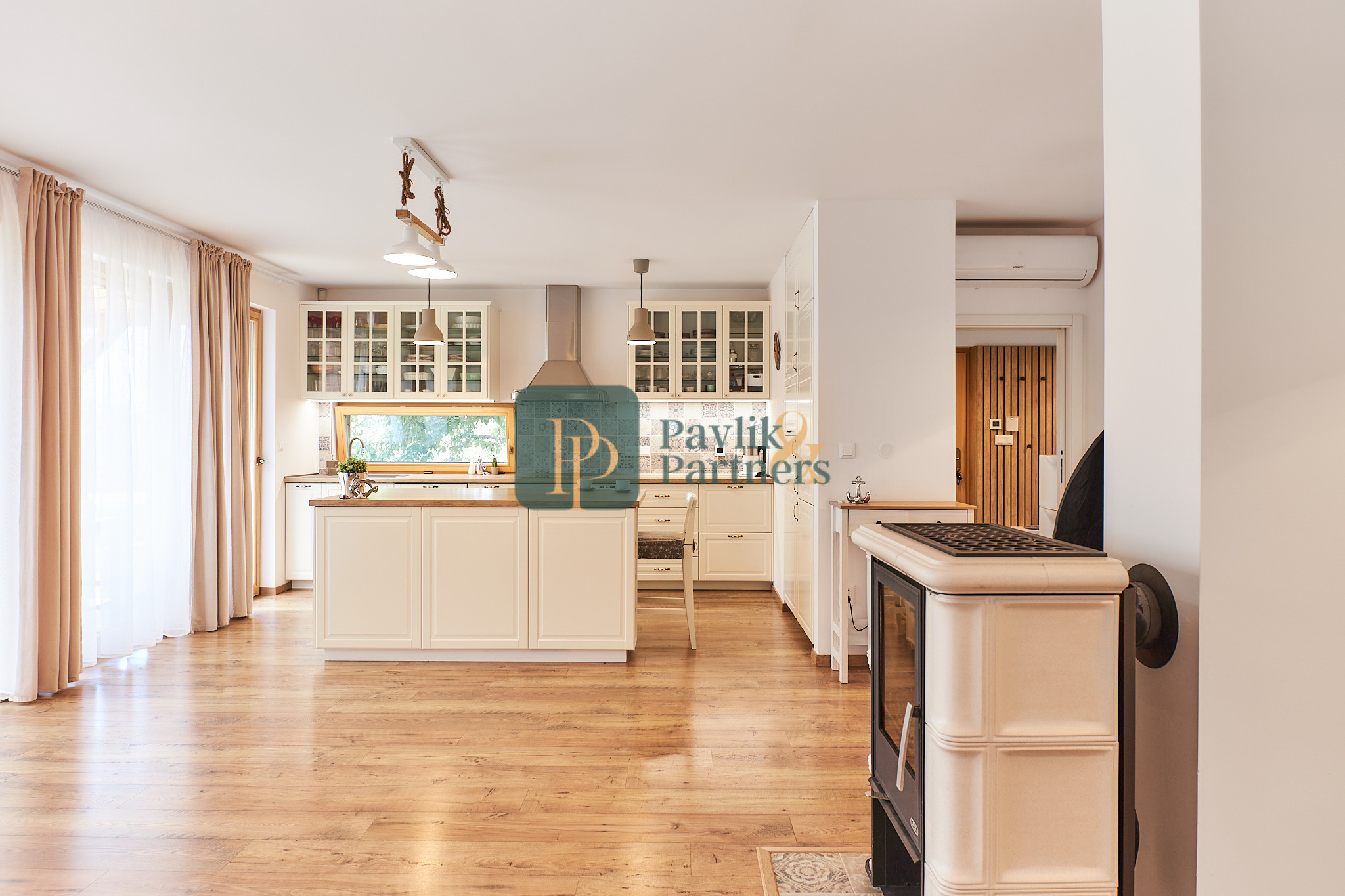 Vykurovanie je elektrické podlahové /infra/ s ovládaním v jednotlivých miestnostiach a tiež krbovými kachľami /7kW/. Tepelné čerpadlo vzduch-vzduch. Ohrev TUV elektrickým bojlerom 200l + fotovoltaikou.