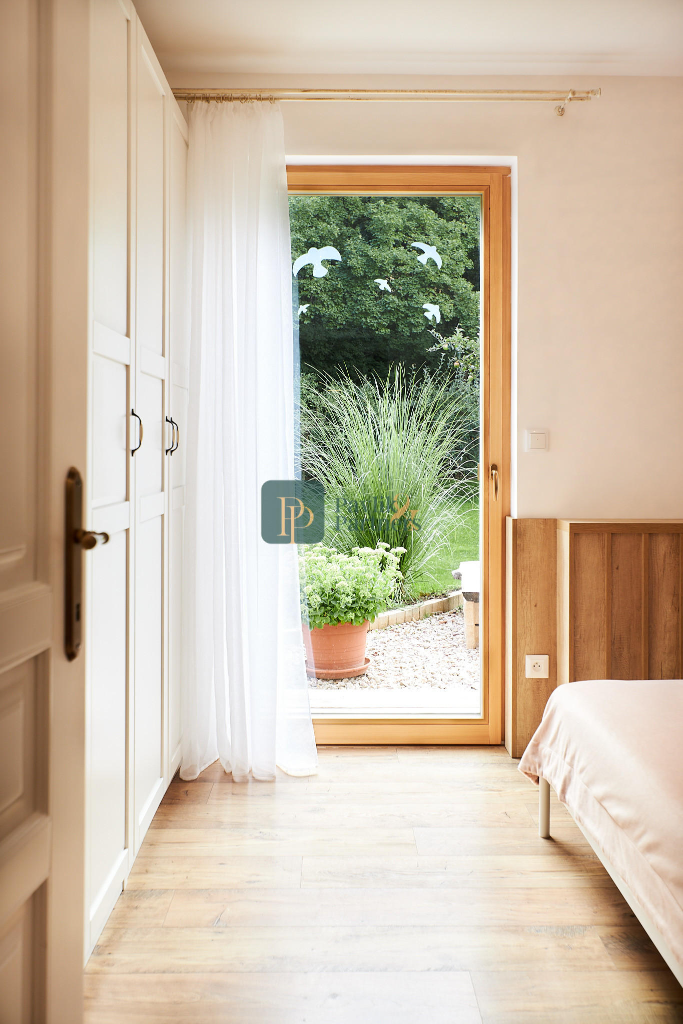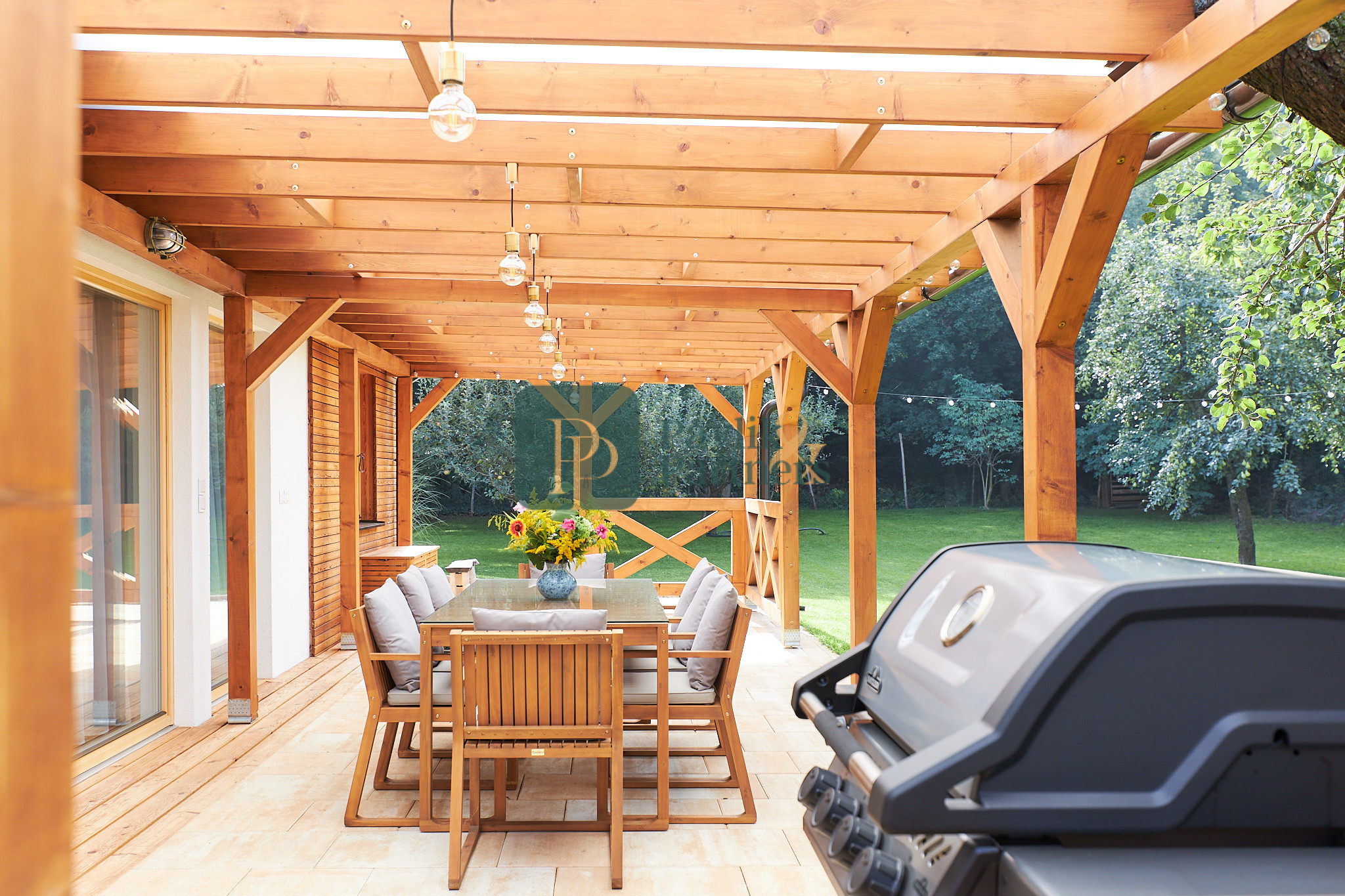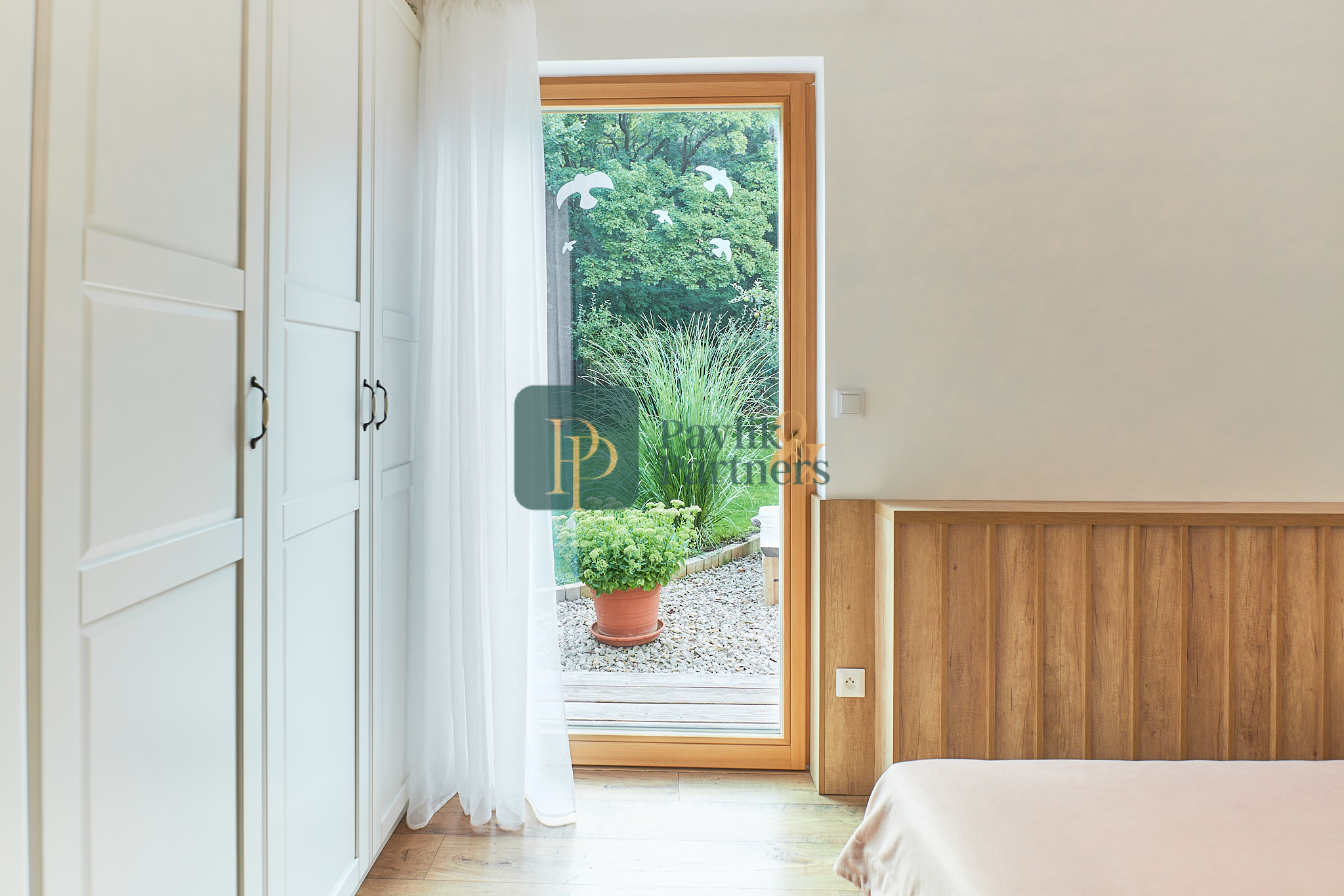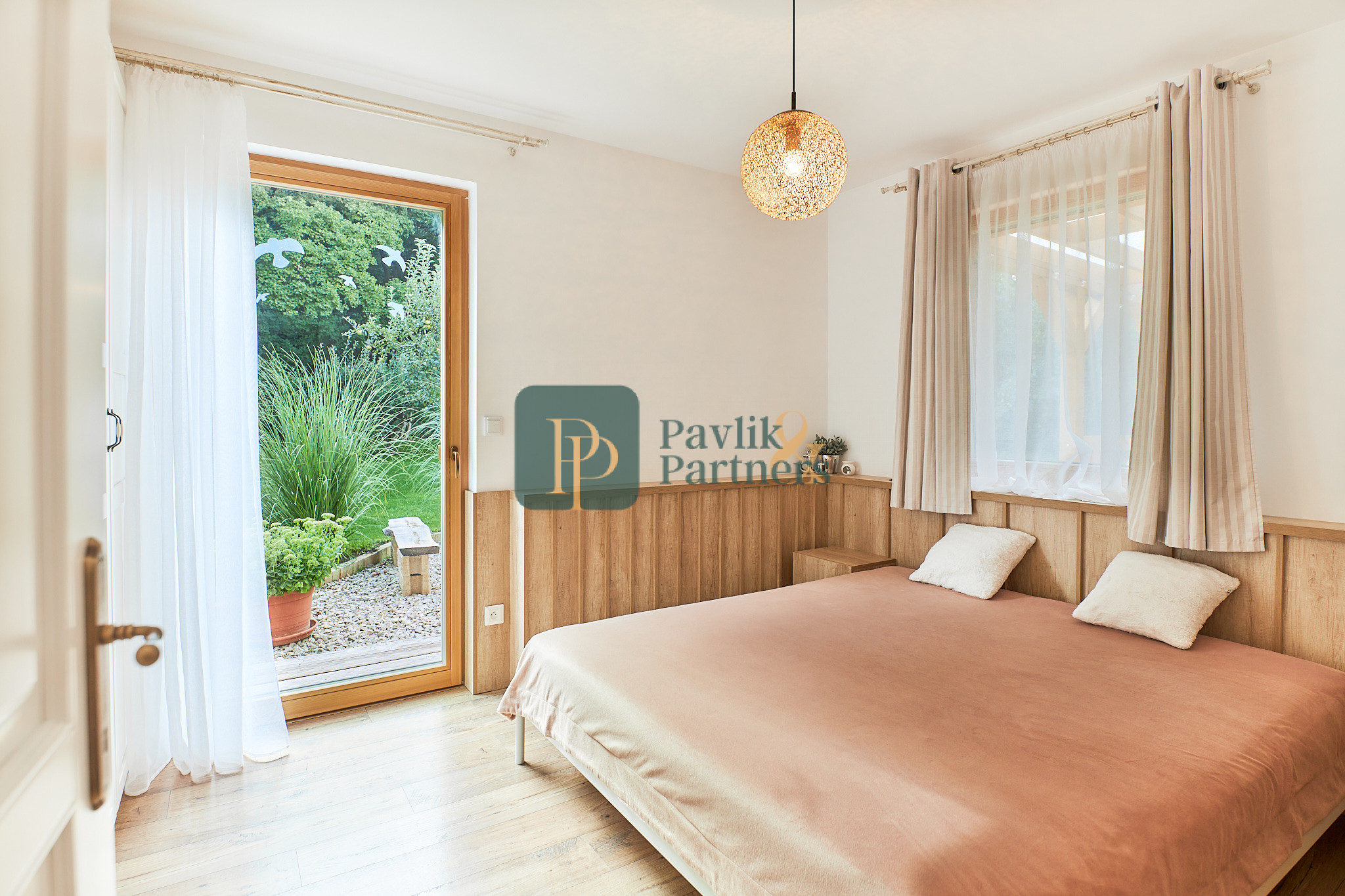 Okná sú drevenné, s izolačným trojsklom. Z každej izby je východ do záhrady.