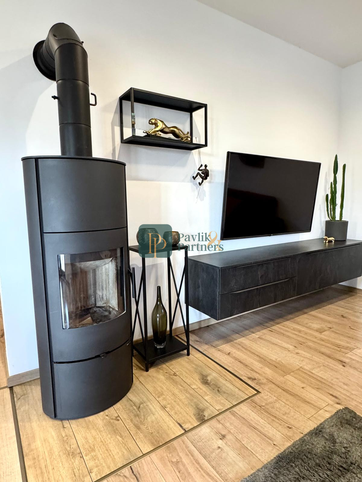 Vybavenie a technológie: vykurovanie je elektrické podlahové + krbové kachle. Dom je montovaný drevodom s 20cm minerálnou vlnou a zateplený 15cm polystyrénom. Má rekuperáciu, aj klimatizáciu, vonkajšie elektrické žalúzie, elektrická brána na diaľkové ovládanie, videovrátnik a akumulačný bojler na teplú vodu s minimálnou spotrebou.