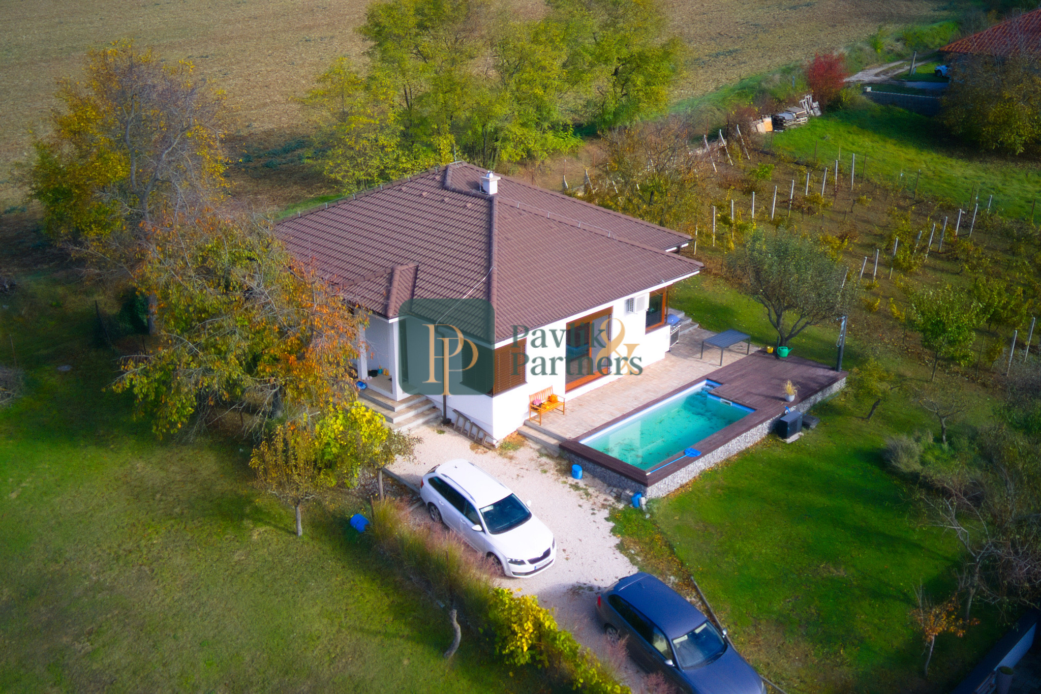 Dom bol skolaudovaný v roku 2020, postavený z tehly hr.30 cm, zateplený hr.15 cm, väzníkový krov, betónová škridla Terran, okná zn. Salamander, teplovodné elektrické podlahové kúrenie, elektrické vonkajšie žalúzie, klimatizácia.