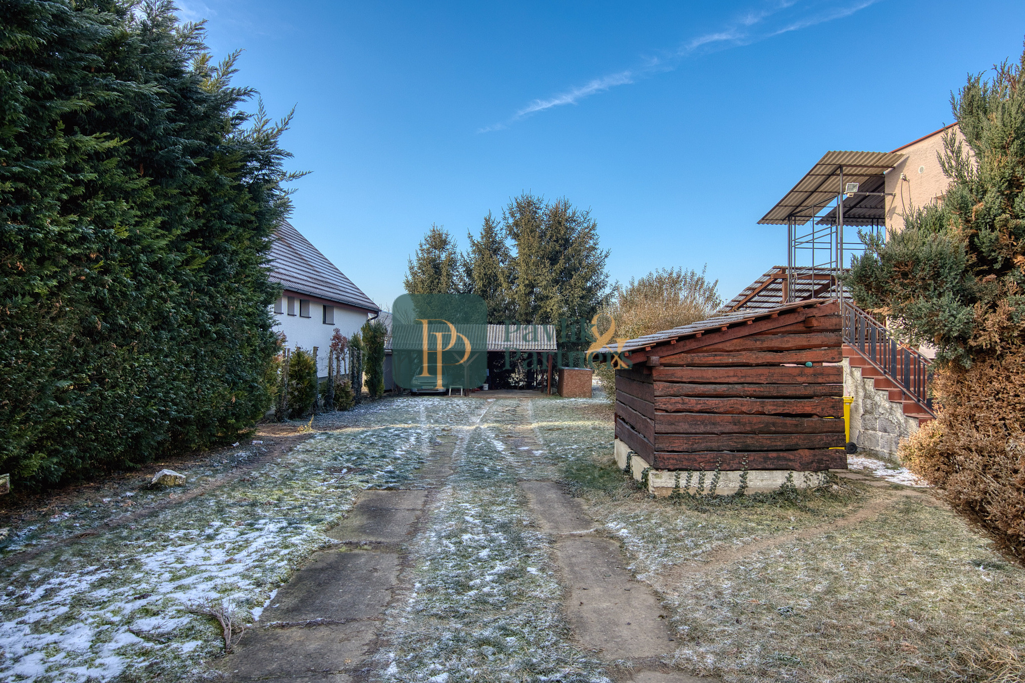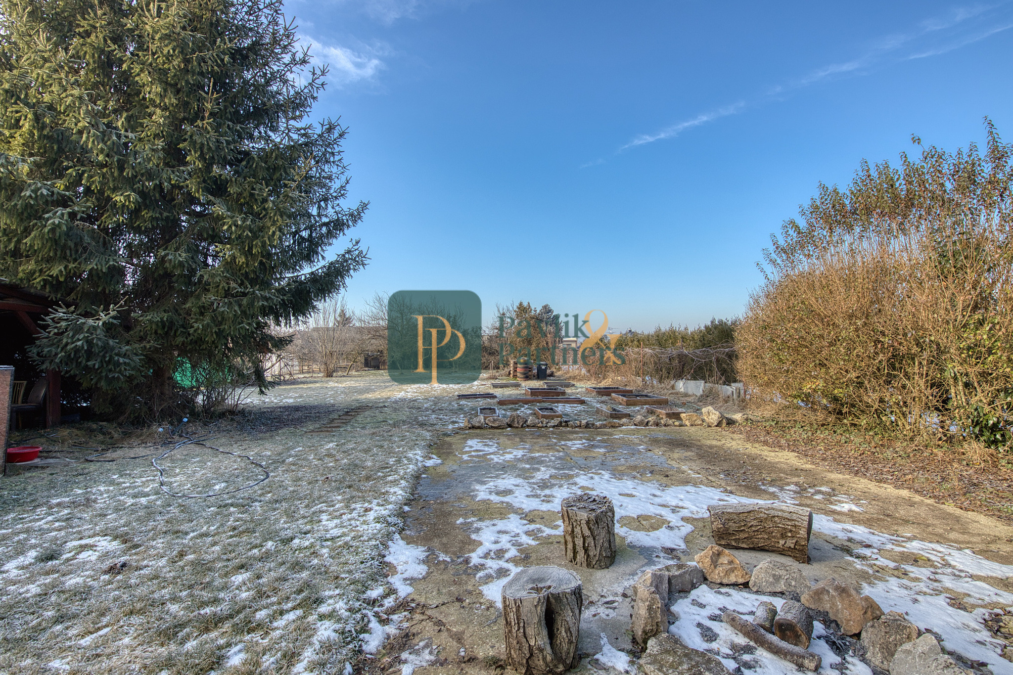 - krásny rovinatý a široký pozemok s ovocnými stromami, prístrešok pre dve autá, ohnisko na grilovanie