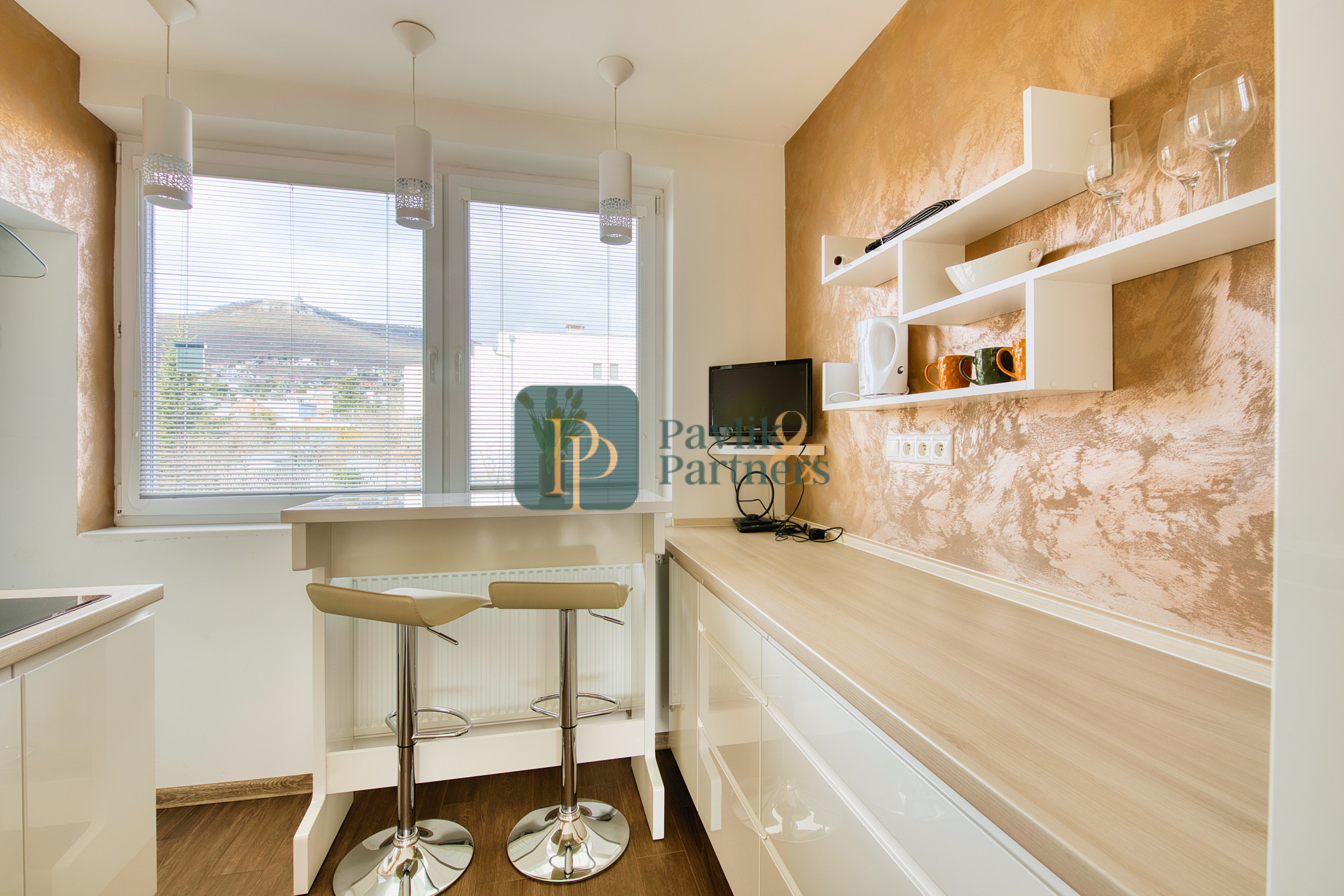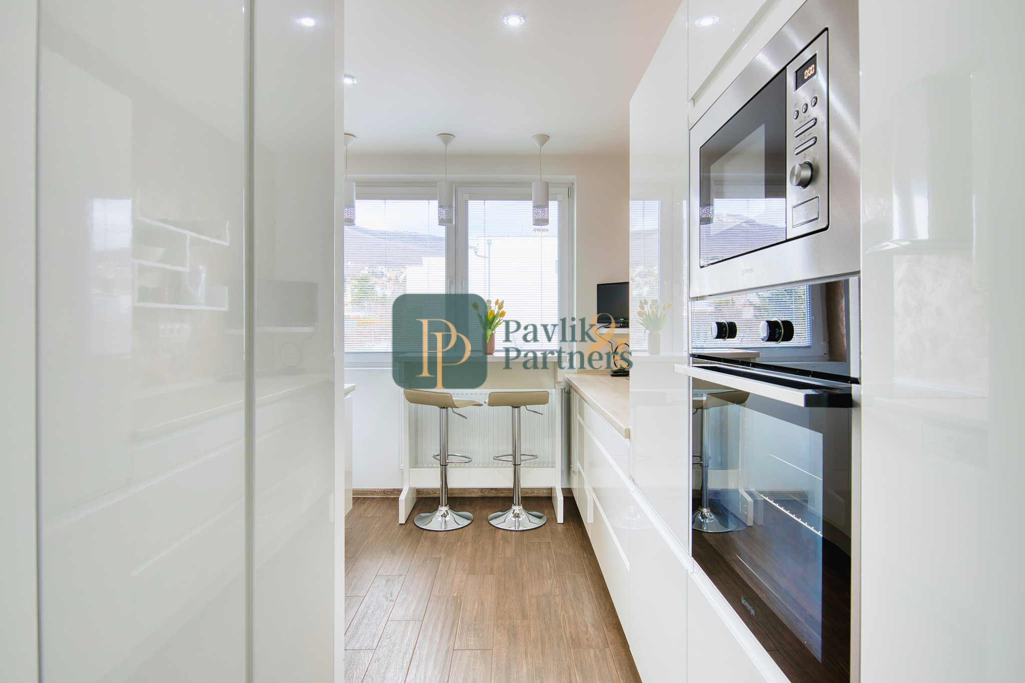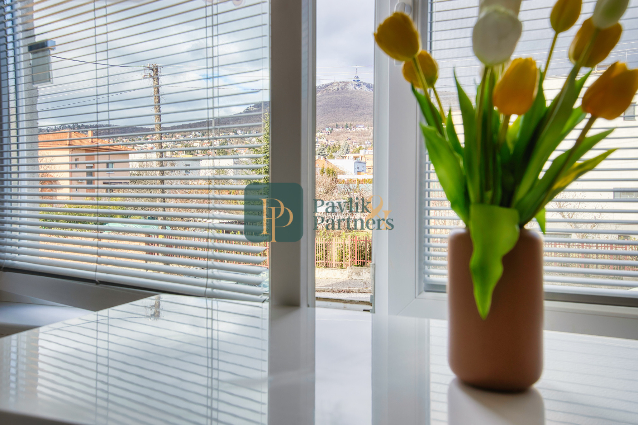 Výhody nehnuteľnosti: kompletná rekonštrukcia, zariadenie, krásne výhľady na mesto aj na pyramídu, vlastné kúrenie, nizkopodlažná bytovka, bezplatné parkovanie, výborné mesačné náklady.