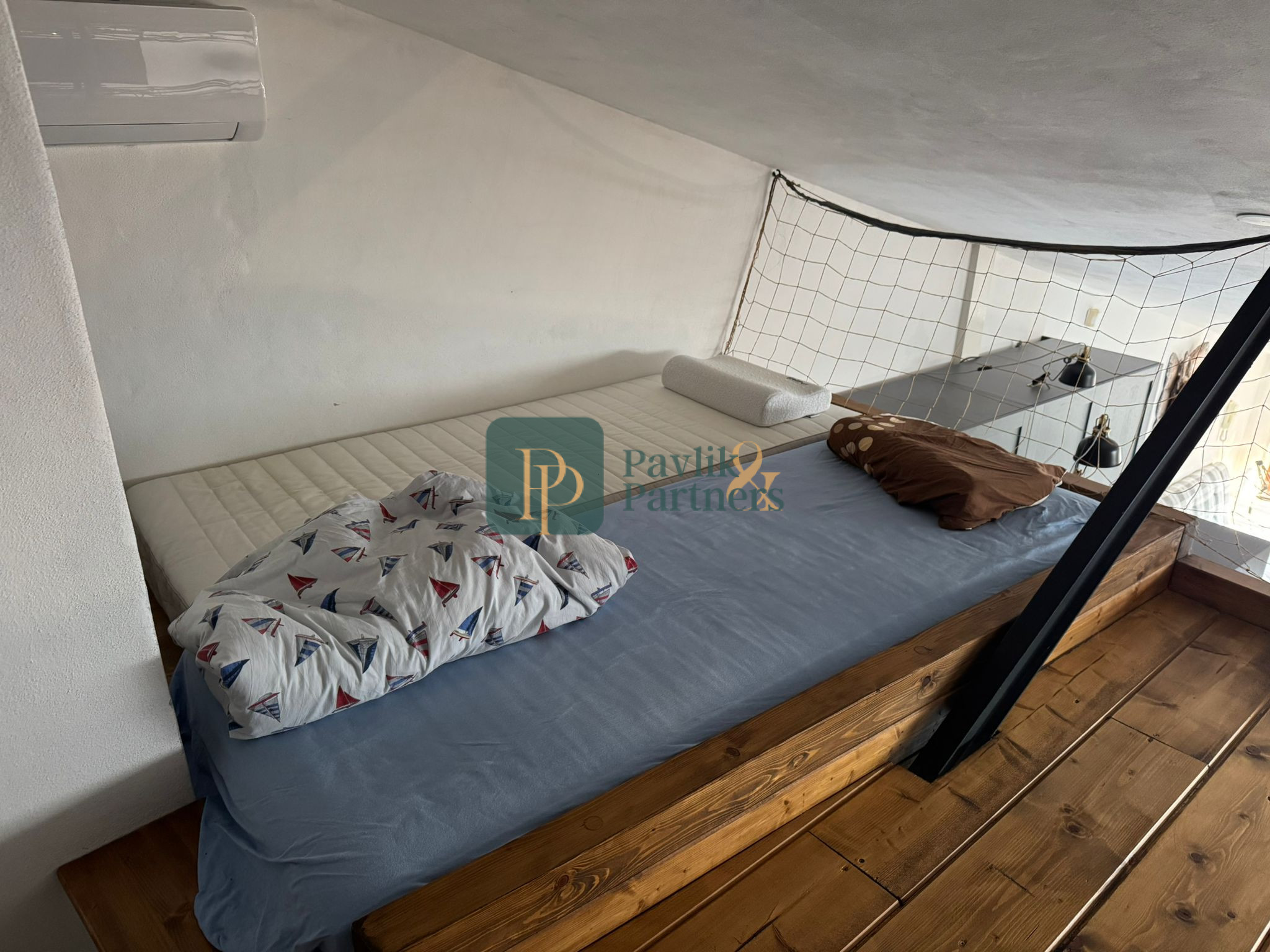 Na vyvýšenom podlaží sa nachádza pracovný kút a druhá spálňa.