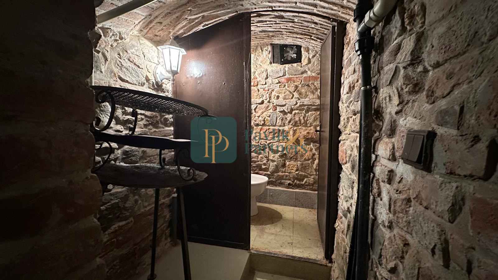 Je vybavená elektrikou, vodou aj kanalizáciou. Priamo v pivnici sa nachádza jedno WC, k ďalším dvom WC je prísup z krásneho nádvoria, ktoré je taktiež premetom tohto prenájmu.