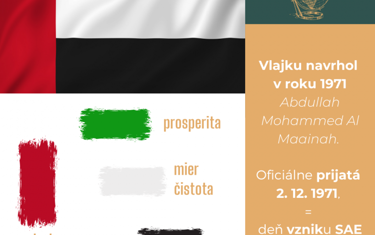Čo symbolizujú farby vlajky SAE? Červená = odvaha, statočnosť, sila